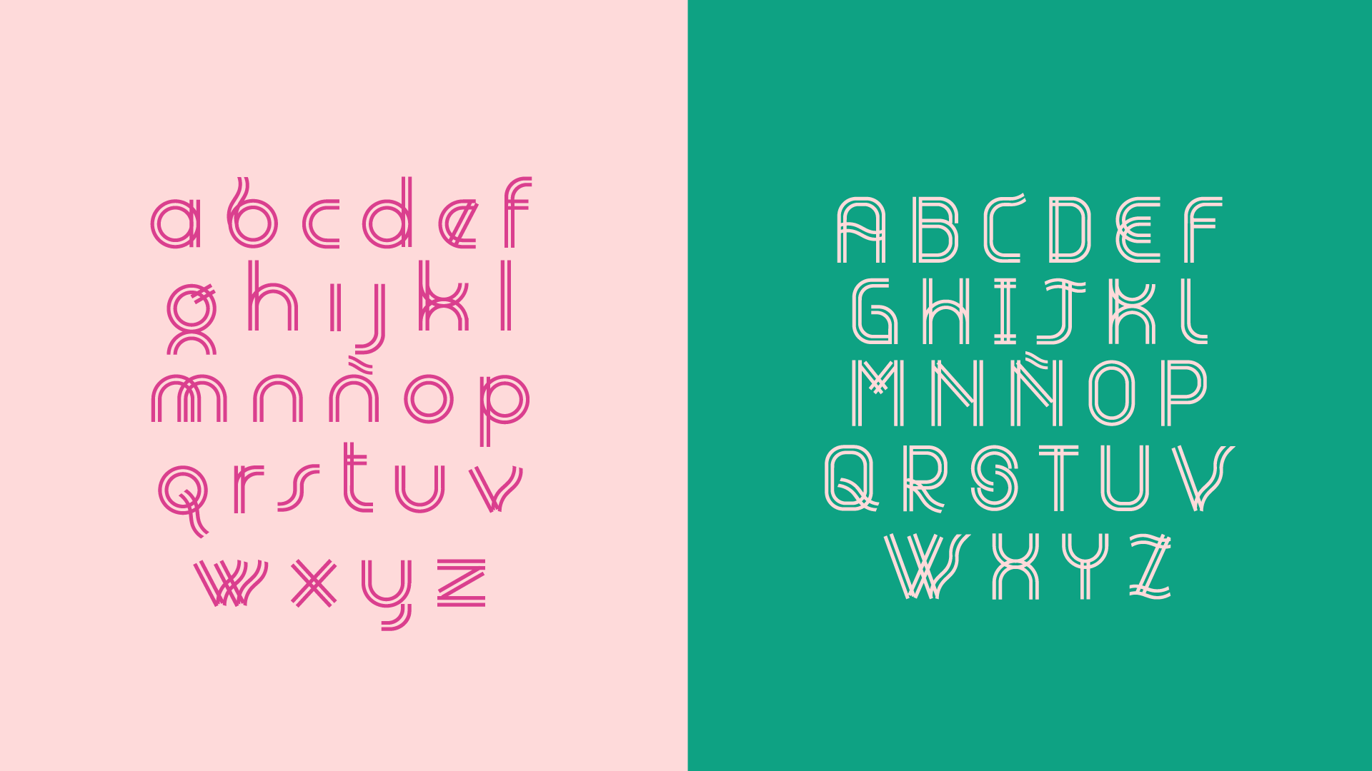 The base modules used to develop the letterforms, built with double lines, represent two dimensions: the physical woman she presented to others, and the spiritual woman who navigated emotions of internal and external rejection, self-awareness, and strength. Straight lines and curves reflect her adaptation to an aggressive environment shaped by fear of difference.